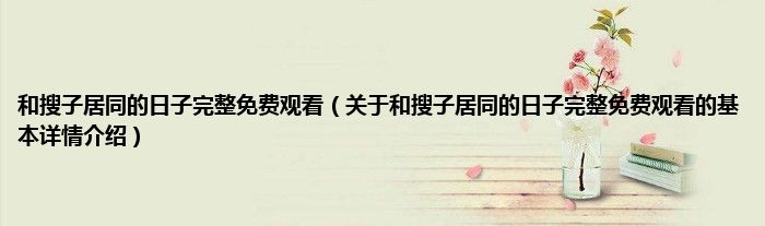 本文关于和搜子居同的日子完整免费观看的基本详情介绍就讲解完毕,希望对大家有所帮助。
