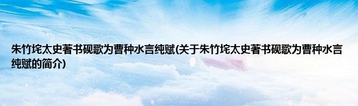 朱竹垞太史著书砚歌为曹种水言纯赋(关于朱竹垞太史著书砚歌为曹种水言纯赋的简介)