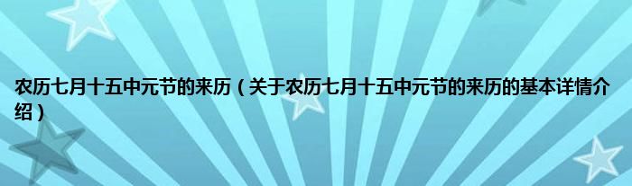 农历七月十五中元节的来历(关于农历七月十五中元节的来历的基本详情介绍)