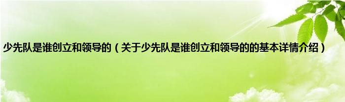 本文关于少先队是谁创立和领导的的基本详情介绍就讲解完毕,希望对大家有所帮助。