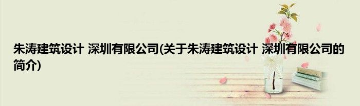 大家好,朱涛建筑设计 深圳有限公司,关于朱涛建筑设计 深圳有限公司的简介很多人还不知道,现在让我们一起来看看吧!