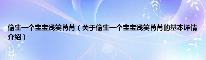 偷生一个宝宝浅笑苒苒(关于偷生一个宝宝浅笑苒苒的基本详情介绍)