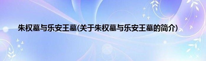 朱权墓与乐安王墓(关于朱权墓与乐安王墓的简介)