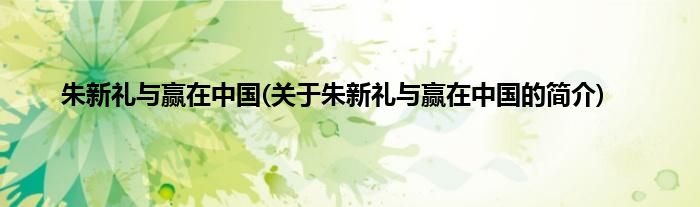 1、 《朱新礼与赢在中国》是中国民主法制出版社出版的图书。