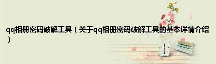本文关于qq相册密码破解工具的基本详情介绍就讲解完毕,希望对大家有所帮助。