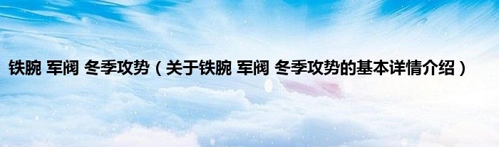 铁腕 军阀 冬季攻势(关于铁腕 军阀 冬季攻势的基本详情介绍)