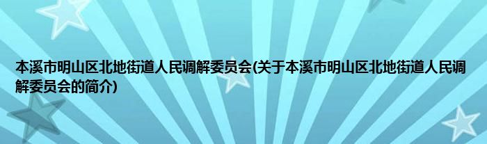 本溪市明山区北地街道人民调解委员会(关于本溪市明山区北地街道人民调解委员会的简介...