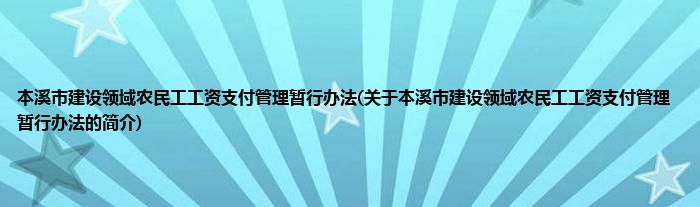 大家好,本溪市建设领域农民工工资支付管理暂行办法,关于本溪市建设领域农民工工资支付管理暂行办法的简介很多人还不知道,现在让我们一起来看看吧!