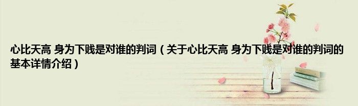 本文关于心比天高 身为下贱是对谁的判词的基本详情介绍就讲解完毕,希望对大家有所帮助。
