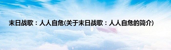 本文关于末日战歌:人人自危的简介就讲解完毕,希望对大家有所帮助。