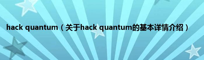 本文关于hack quantum的基本详情介绍就讲解完毕,希望对大家有所帮助。