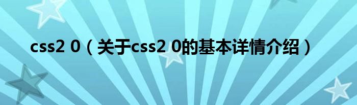 本文关于css2 0的基本详情介绍就讲解完毕,希望对大家有所帮助。