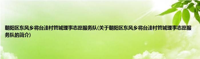 本文关于朝阳区东风乡将台洼村管城理事志愿服务队的简介就讲解完毕,希望对大家有所帮助。