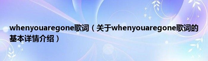 本文关于whenyouaregone歌词的基本详情介绍就讲解完毕,希望对大家有所帮助。