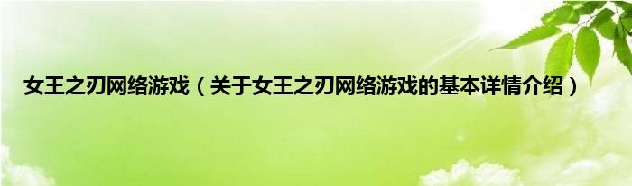 本文关于女王之刃网络游戏的基本详情介绍就讲解完毕,希望对大家有所帮助。