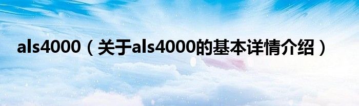 本文关于als4000的基本详情介绍就讲解完毕,希望对大家有所帮助。