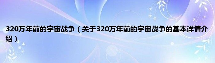 本文关于320万年前的宇宙战争的基本详情介绍就讲解完毕,希望对大家有所帮助。