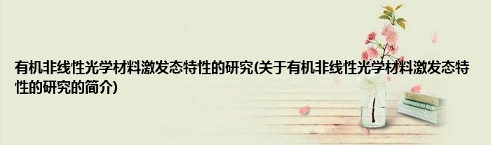 本文关于有机非线性光学材料激发态特性的研究的简介就讲解完毕,希望对大家有所帮助。