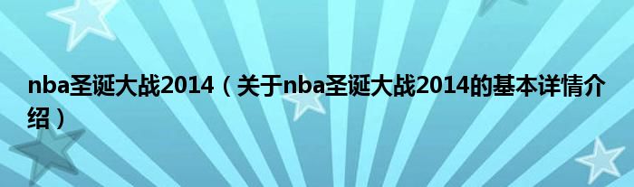 nba圣诞大战2014(关于nba圣诞大战2014的基本详情介绍)