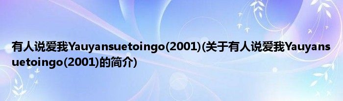大家好,有人说爱我Yauyansuetoingo,2001,关于有人说爱我Yauyansuetoingo,2001的简介很多人还不知道,现在让我们一起来看看吧!