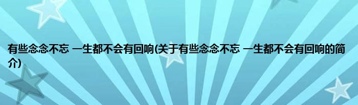 本文关于有些念念不忘,一生都不会有回响的简介就讲解完毕,希望对大家有所帮助。