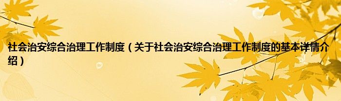 社会治安综合治理工作制度(关于社会治安综合治理工作制度的基本详情介绍)