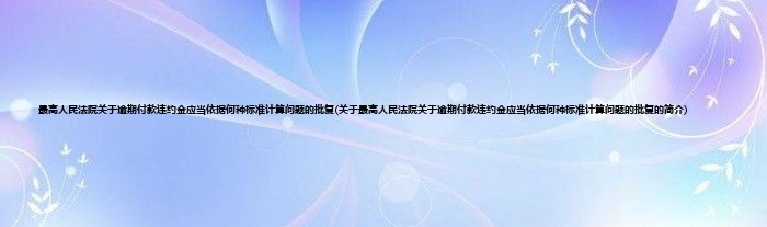 本文关于最高人民法院关于逾期付款违约金应当依据何种标准计算问题的批复的简介就讲解完毕,希望对大家有所帮助。