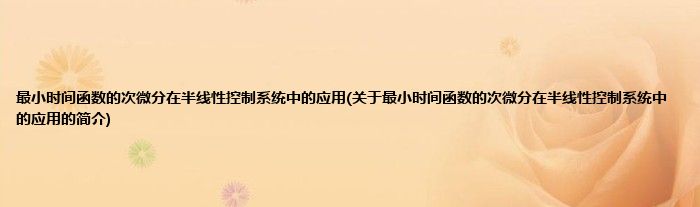 大家好,最小时间函数的次微分在半线性控制系统中的应用,关于最小时间函数的次微分在半线性控制系统中的应用的简介很多人还不知道,现在让我们一起来看看吧!