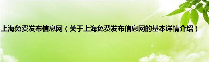 本文关于上海免费发布信息网的基本详情介绍就讲解完毕,希望对大家有所帮助。