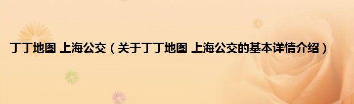本文关于丁丁地图 上海公交的基本详情介绍就讲解完毕,希望对大家有所帮助。