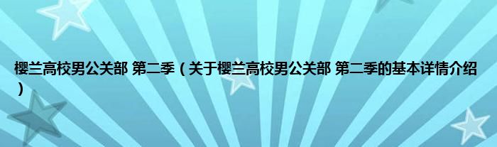 樱兰高校男公关部第二季(关于樱兰高校男公关部第二季的基本详情介绍)
