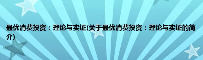 大家好,最优消费投资:理论与实证,关于最优消费投资:理论与实证的简介很多人还不知道,现在让我们一起来看看吧!