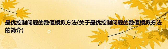 最优控制问题的数值模拟方法(关于最优控制问题的数值模拟方法的简介)
