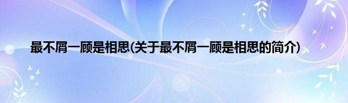 大家好,最不屑一顾是相思,关于最不屑一顾是相思的简介很多人还不知道,现在让我们一起来看看吧!