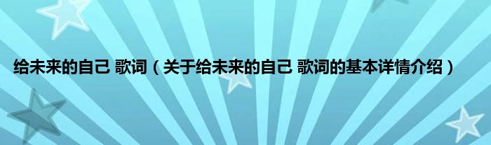 本文关于给未来的自己 歌词的基本详情介绍就讲解完毕,希望对大家有所帮助。