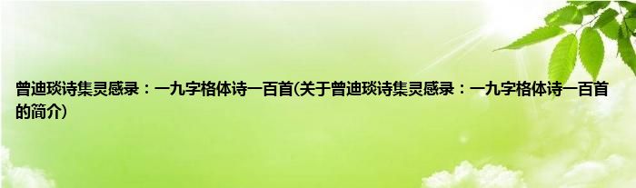 本文关于曾迪琰诗集灵感录:一九字格体诗一百首的简介就讲解完毕,希望对大家有所帮助。