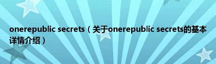 本文关于onerepublic secrets的基本详情介绍就讲解完毕,希望对大家有所帮助。