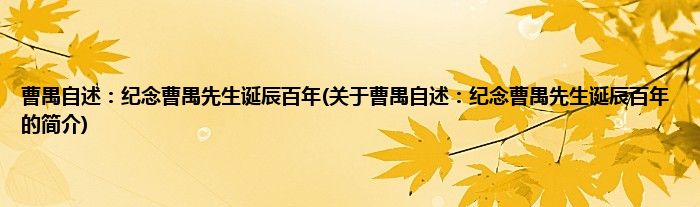 本文关于曹禺自述:纪念曹禺先生诞辰百年的简介就讲解完毕,希望对大家有所帮助。
