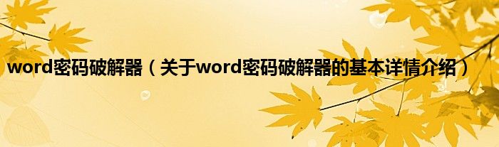 word密码破解器(关于word密码破解器的基本详情介绍)