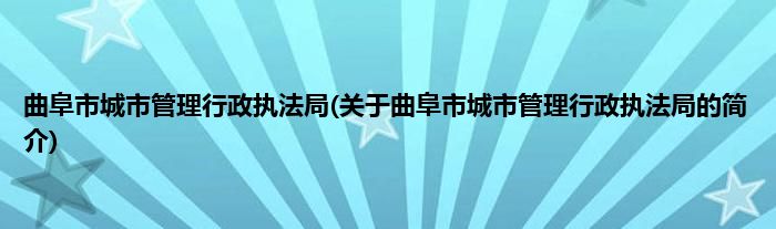 大家好,曲阜市城市管理行政执法局,关于曲阜市城市管理行政执法局的简介很多人还不知道,现在让我们一起来看看吧!