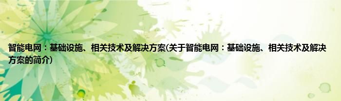 本文关于智能电网:基础设施、相关技术及解决方案的简介就讲解完毕,希望对大家有所帮助。