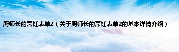 本文关于厨师长的烹饪表单2的基本详情介绍就讲解完毕,希望对大家有所帮助。