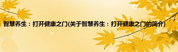 大家好,智慧养生:打开健康之门,关于智慧养生:打开健康之门的简介很多人还不知道,现在让我们一起来看看吧!