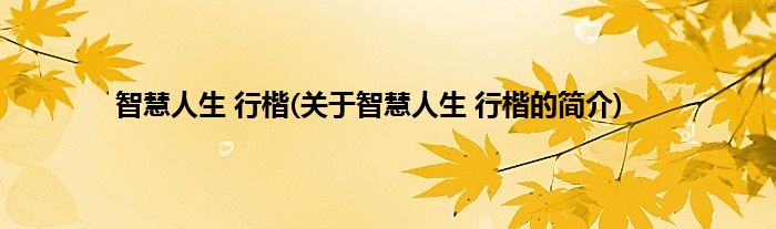 智慧人生 行楷(关于智慧人生 行楷的简介)