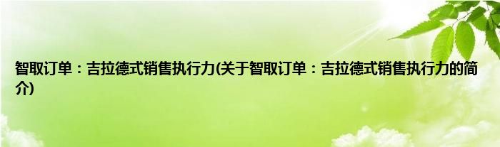 本文关于智取订单:吉拉德式销售执行力的简介就讲解完毕,希望对大家有所帮助。