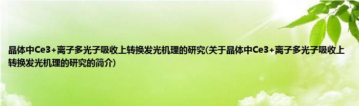 晶体中Ce3+离子多光子吸收上转换发光机理的研究(关于晶体中Ce3+离子多光子吸收上转换发光机理的研究的简介)