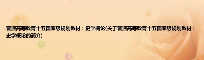 1、 《普通高等教育十五国家级规划教材:史学概论》是2006年高等教育出版社出版的图书。