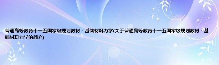 本文关于普通高等教育十一五国家级规划教材:基础材料力学的简介就讲解完毕,希望对大家有所帮助。