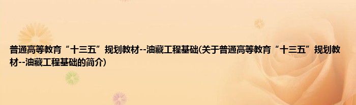 本文关于普通高等教育“十三五”规划教材--油藏工程基础的简介就讲解完毕,希望对大家有所帮助。