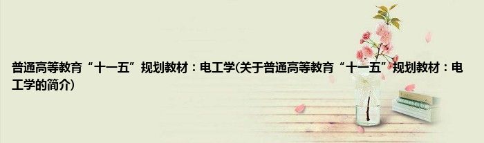 本文关于普通高等教育“十一五”规划教材:电工学的简介就讲解完毕,希望对大家有所帮助。